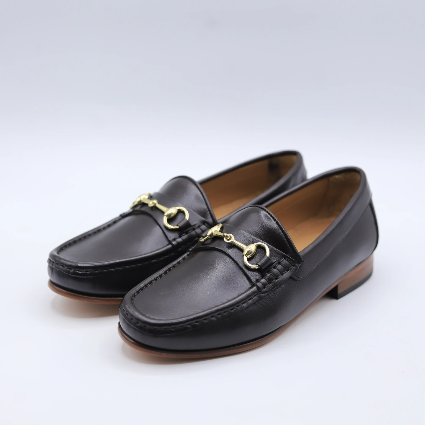 A premium horsebit loafer finished with a high-quality bronze golden buckle